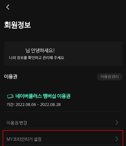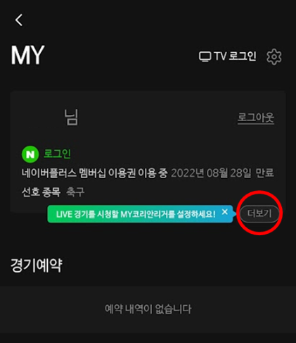 4. MY페이지 > [더보기] > 회원정보 > MY코리안리거 설정에서 응원하는 코리안리거를 저장하세요!